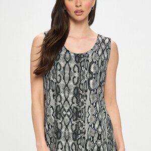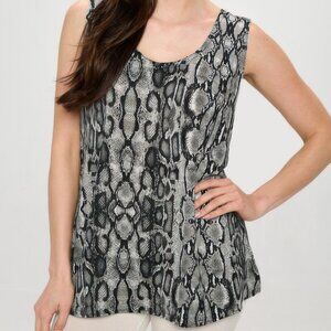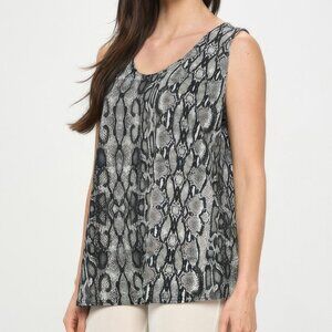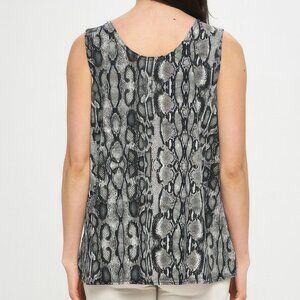 Brighten up your wardrobe with this sleeveless printed tank top, perfect for warm weather or layering under a jacket. Crafted from a smooth and stretchy polyester blend, this top delivers both comfort and a flattering fit. The bold print adds visual interest while the sleeveless cut keeps things cool and casual. Ideal for pairing with jeans, shorts, or skirts, it’s a standout staple that works for any day of the week.