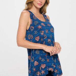 The HIT Shark Bite Hem Tank is the ideal blend of comfort and style. With a versatile round neckline and sleeveless cut, this printed tank offers a lightweight feel and a breezy silhouette. The shark bite hemline adds flow and movement, giving it a modern edge. Perfect for layering or standalone wear, this USA-made tank is as easy to maintain as it is to wear.