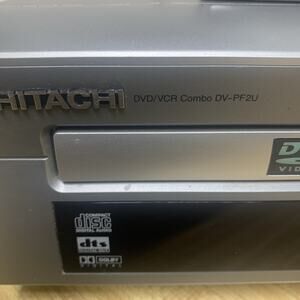 Hitachi DV-PF2U DVD/VCR/MP3 Playback Silver Combo Player w/Working Remote TESTED from 2002. Light scratches on the top, no dents. Clean and ready to use. Tested with 2 VCR movies and 1 DVD with zero issues. AA batteries for remote not included.
