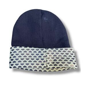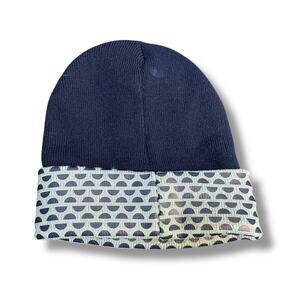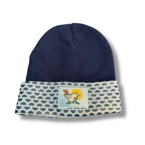 Unique Artisan Stylized Bird Hat with Patterned Cuff, Hitwear Knit Beanie, Custom Embroidered, Bird with Sun Patch Pattern Cuff Navy Blue, One Size, Holiday, Vacation; New Without Tags