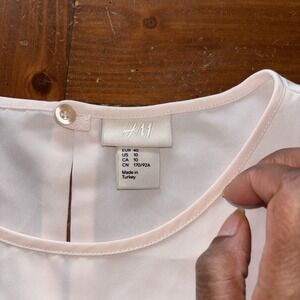 The H&M polyester pink camisole tank top in size 10 is a stylish and comfortable addition to any woman's wardrobe. This sleeveless top features a solid pattern with a round neckline and a relaxed fit, making it perfect for everyday wear. The pullover closure adds convenience, while the machine washable material ensures easy care and maintenance. Ideal for pairing with jeans or skirts, this versatile camisole from H&M is a must-have for any fashion-forward woman.