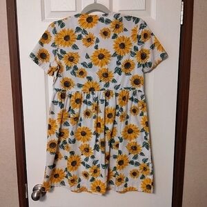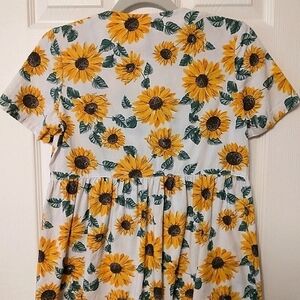 H&m Sunflower Print 100% Cotton Short Sleeve V-Neck Babydoll Mini Dress XS