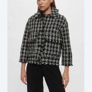 H&m Textured Tweed Style Weave Jacket Size XS black