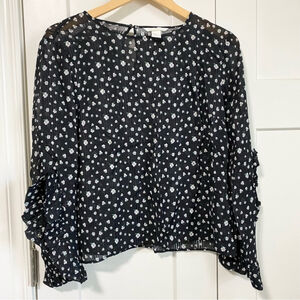 H&m black floral sheer blouse open sleeves size 6