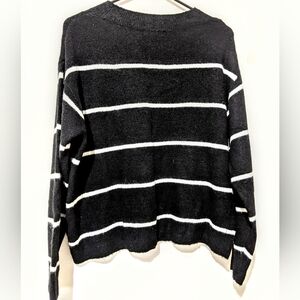 H&m black white stripe cozy comfy warm wool sweater sz small scoop neck