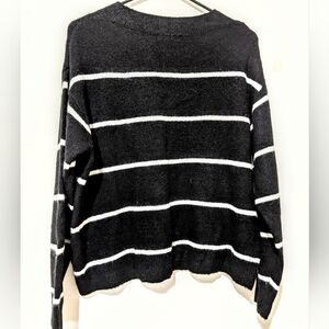 H&m black white stripe cozy comfy warm wool sweater sz small scoop neck.