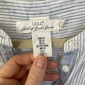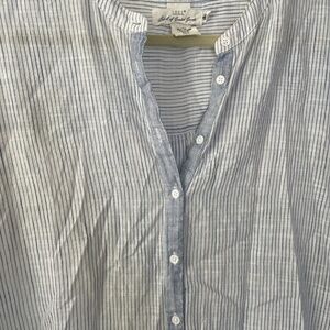 Good condition! Long Sleeve Half button down mixed stripe Navy & White Tunic length