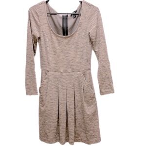 Woman’s xs dress with pockets. Zip up in the back. Sleeves are 3/4. Perfect condition pet and smoke free home. This is a light pink color. Measurements provided below. These are approximate and we’re taken with dress laying flat without adding stretch
