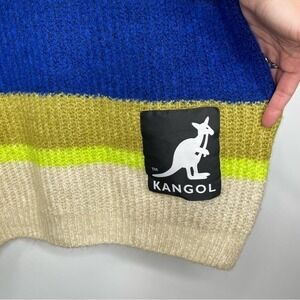 H&M x Kangol Fuzzy Blue, Green, Yellow, Black & Cream Striped Oversized Sweater