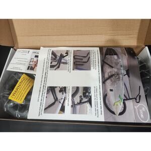 Brand new in open box! Ho Stevie! surfboard bike rack lets you safely carry surfboards (up to 8 ft) using your bike. Works with beach cruisers, mountain bikes, road bikes, and more (not recommended for lightweight carbon/titanium seat posts). Lightweight, rust-resistant anodized aluminum with foam padding to protect your board. Easy seat-post clamp installation with included hardware. Eco-friendly way to cruise to your favorite break! Box has some wear/stickers—see photos.