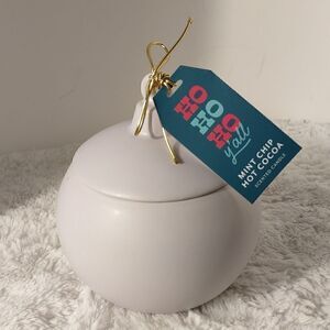 This New with tags lavender colored ceramic Christmas ornament HoHoHo Y'all Mint Chip Hot Cocoa double wick candle measures approximately: 6" tall x 4-1/2" and 12oz. All offers are welcome.
