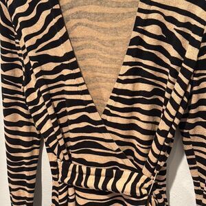 Embrace bold style with this zebra print wrap dress. Perfect for any occasion, it features a flattering fit and eye-catching design. NWOT