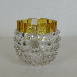 Hobbs Brockunier Dew Drop Hobnail Clear Yellow Glass Cream Sugar Set 4 in tall