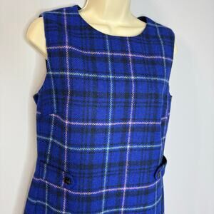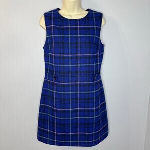 Hobbs Emberly Moon Wool Mini Shift Dress Check Cobalt Multi Classic Sz 8