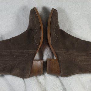 Suede Western-styled ankle boots. Perfect for a short dress, ankle jeans or western jeans! So versatile! Adds just a subtle western flare! EUC - minor rub marks on the suede along the bottom of the boot near the heels.