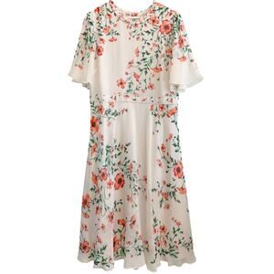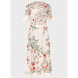 Hobbs Gianna Silk Dress Flutter Sleeve Midi Cream Red Floral NWT