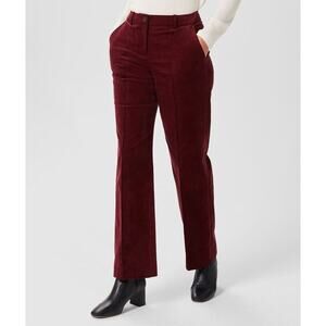 NWT dark red corduroy dress pants with button/zip closure, straight leg, and front and back pockets. Extra button included. Still available for sale on Hobbs website in select sizes. Matching NWT blazer posted separately.