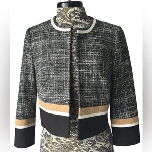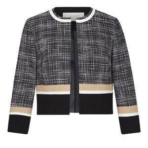 Hobbs London Aida Cropped Blazer Black, White, Tan Size 6