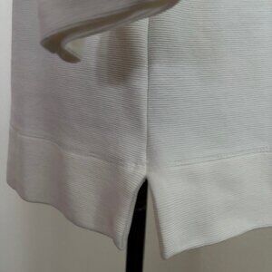 Lateral ribbing enhance the look of the cute 3/4 sleeve top. Top has 2" slits and a straight hem. Has a funnel (wide) neck for easy pullover. Top is in excellent condition! Stock photo provided for reference.