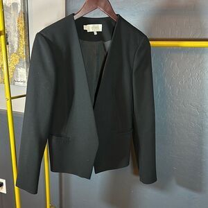 Elevate your style with this sleek black blazer. Perfect for any occasion, it offers a sophisticated look.