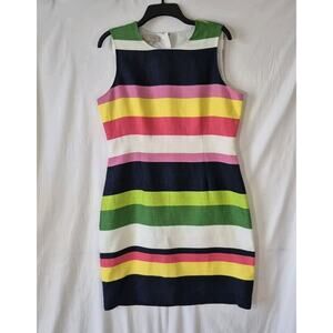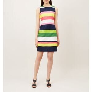 Hobbs London Designer Colorful Colorblock Linen Ives Sheath Dress US 10
