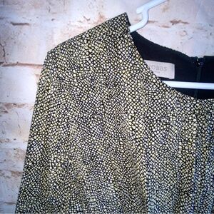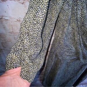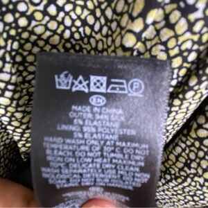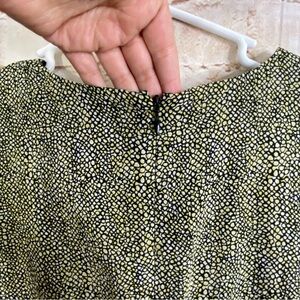 Hobbs London Dotted Silk Faux Wrap Dress Size 10 - 94 Silk 6 spandex - round neckline, sleeves hit right above wrist with subtle ruching, faux front wrap, zips in back. Yellow Green (citron)black dotty print