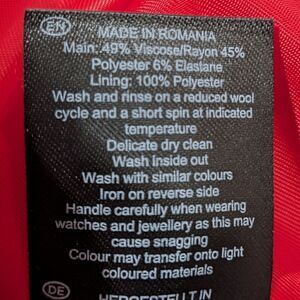 Main: 49% Viscose/Rayon, 45% Polyester, 6% Elastane