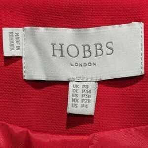 Hobbs London Elize Red Cropped Open Front 3/4 Sleeve Blazer Jacket Sz 4 Petite