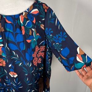 Hobbs London Floral Print Navy Blue Women's Loose Blouse With Half-Sleeves