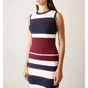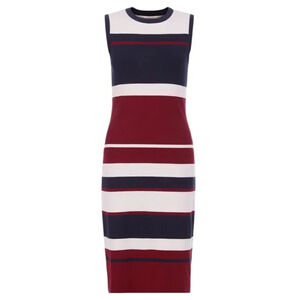 Hobbs London Grace Dress Stretch Knit Striped Blue Burgundy 10