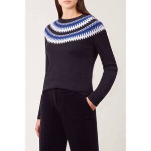 The Greta sweater by Hobbs London Classic jumper in a crew neck with fair isle pattern Merino wool blend Very good pre-owned condition Size M Bust 19" across Shoulder to hem 2e"