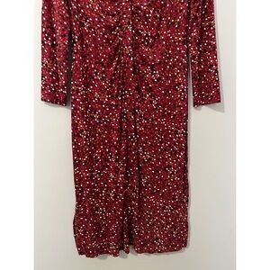 Hobbs London Hatty Jersey Dress Women’s 10 Red Multi Long Sleeve Button Ruched