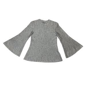 Hobbs London Long Sleeve Top Bell Sleeves Flared Hem Gray Viscose Wool - Size XS