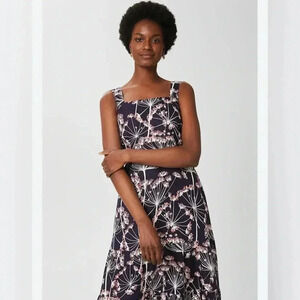Hobbs London Lynley Flax Linen Midi Dress in Blue & Ivory Size U.S 14