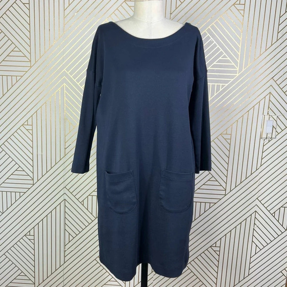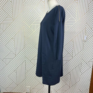 Hobbs London Navy Blue Zip Shoulder Pocket Shift Dress Size US 6