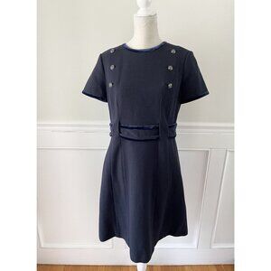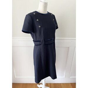 Hobbs London Navy Velvet Trim Button Accent Dress US 10 UK14