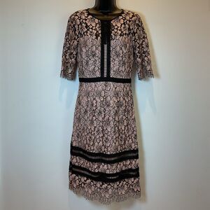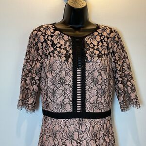 Hobbs London Penny Dress US 6 NWT Blush Pink Black Lace Cocktail Party Sheath
