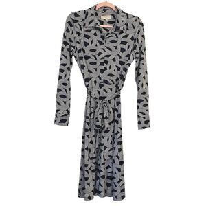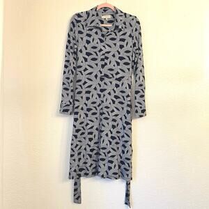 Hobbs London Sandrine Classic Tie-Waist Shirtdress Size 6 Navy Geometric Office Workwear
