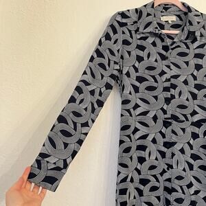 Hobbs London Sandrine Classic Shirtdress Size 6 Navy Geometric Office Workwear