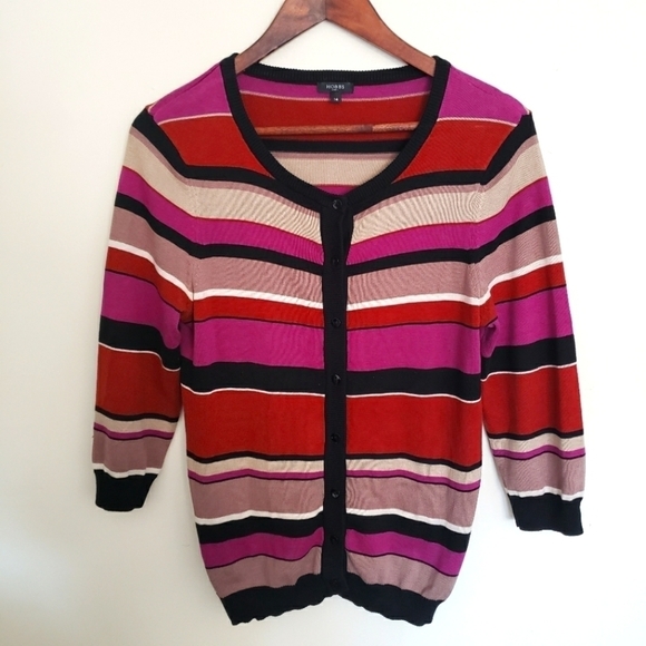 Hobbs London Striped Cardigan Sweater Silk Cotton Blend Womens US Size 8