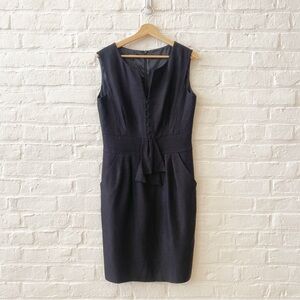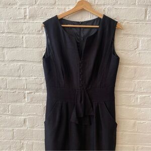 Hobbs London || Textured Woven Pencil Sheath Dress Button Front Black UK 12 US 8