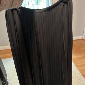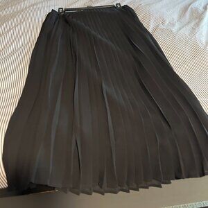 Pleated and lined calf-length black skirt, perfect for fall or summer. Excellent used shape, worn maybe twice. Buttons on side, great skirt to wear with sweaters, boots, or a leather jacket. See label for UK sizing.