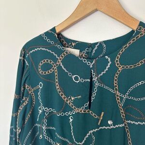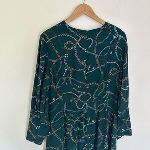 Hobbs London Women’s Angela Chain Print Leaf Green Long Sleeve Empire Midi Dress
