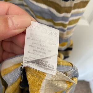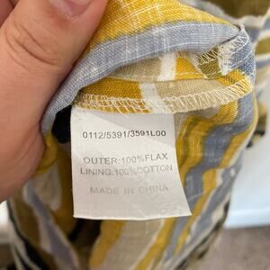 Item: Yellow, white, blue and green striped maxi sleeveless dress from Hobbs London. 100% flax.