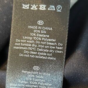 Materials: Shell 90% silk/10% elastane; lining 100% polyester. Dry clean,