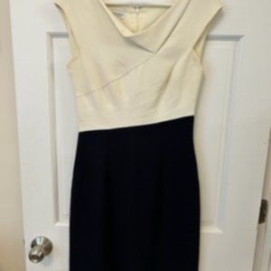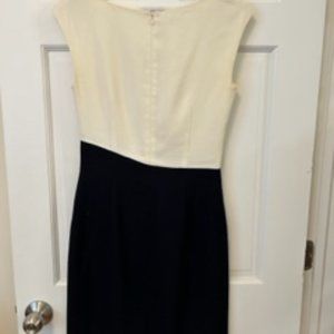 Hobbs Two Tone Navy and Cream Dress. Bought this in the UK. Used to wear this for work. Smart and well fitted. Fully lined. A little bit of discoloration on the inside of the sleeves but not visible when wearing. Only ever been dry cleaned. Flattering cut. Great for office, wedding or other formal wear. Sits just above the knee.