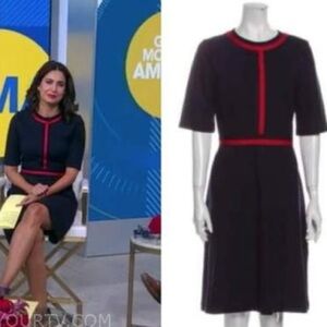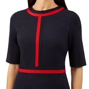 Hobbs | Women's Delia Striped Trim Dress Size US 2 Navy Red Office Work