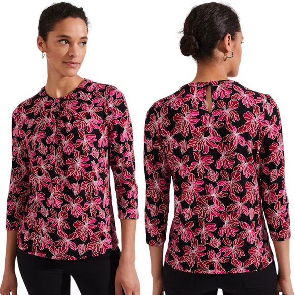 Hobbs of London Julia Floral Printed Top - Red/Pink/Black - L