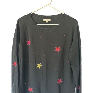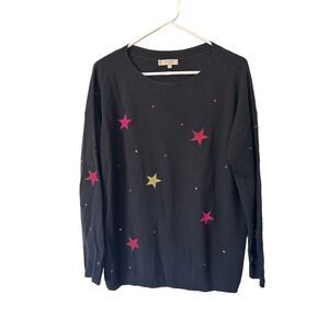 Hobbs London Black Boat Neck Embroidered Multicolor Star Sweater Size M Cosmic