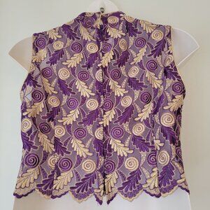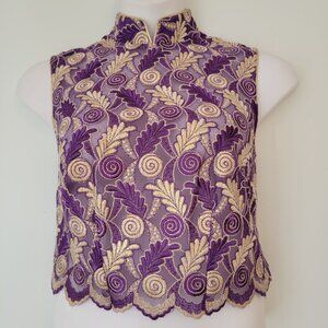Hobby Horse Purple Gold Embroidered Sleeveless Blouse XL Vest Show